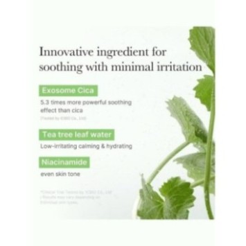 Tonique apaisant enrichi en Exosome et Cica pour calmer, hydrater et protéger la peau. Appliquer sur le visage et le cou après le nettoyage à l’aide d’un coton ou des mains, puis tapoter doucement jusqu’à absorption complète.
