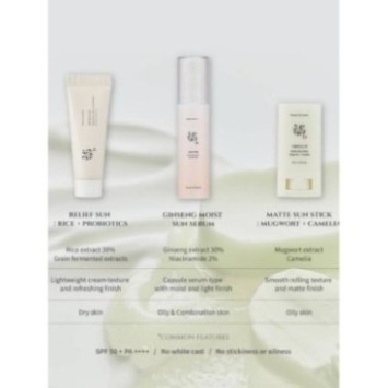 Le Beauty of Joseon Bâton de Soleil Mat Armoise + Camélia SPF 50+ PA++++ est un écran solaire pratique et nomade, conçu pour protéger la peau contre les rayons UVA/UVB tout en préservant un fini mat et frais. Enrichi en extrait d’armoise, connu pour ses propriétés apaisantes, et en camélia, aux vertus hydratantes et antioxydantes, ce bâton solaire prévient les irritations et maintient la peau confortable toute la journée. Sa texture légère et facile à appliquer permet une protection rapide, sans laisser de film blanc ni sensation collante. Bienfaits : Protection solaire élevée : SPF 50+ PA++++ Contrôle la brillance et laisse un fini mat naturel Apaise et hydrate la peau grâce aux extraits d’armoise et camélia Pratique pour une application nomade et ciblée Convient à tous types de peau, même sensibles