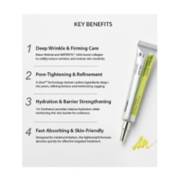 Le CELIMAX Booster de Resserrage de la Rétine Vita-A est conçu pour raffermir et revitaliser le contour des yeux, réduisant l’apparence des ridules, poches et cernes. Enrichi en Vita-A (rétinol), il stimule le renouvellement cellulaire et améliore l’élasticité de la peau délicate autour des yeux. Sa texture légère pénètre rapidement, laissant le contour des yeux lisse, hydraté et visiblement tonifié. Bienfaits : Raffermit et tonifie le contour des yeux Réduit les ridules et signes de fatigue Améliore l’élasticité et la fermeté de la peau Hydrate et nourrit la peau délicate Convient aux peaux sensibles autour des yeux