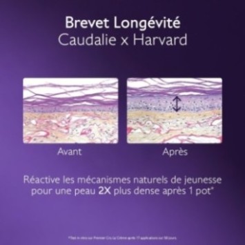 Brevet Longévité (Caudalie x Harvard Medical School) : protège le capital jeunesse de la peau et ralentit le vieillissement cutané.