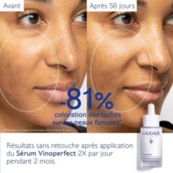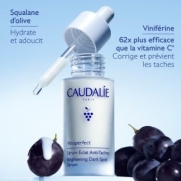 Le Sérum Éclat Anti-Taches Vinoperfect est la première étape essentielle pour un teint uniforme et lumineux. Sa texture légère pénètre rapidement et laisse la peau douce et confortable. Il agit sur les taches pigmentaires, prévient leur apparition et illumine le teint pour une peau visiblement éclatante et unifiée.